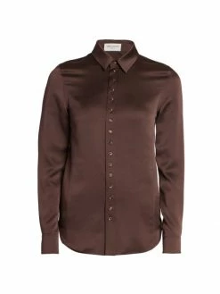 Buy ๐ฏ Saint Laurent Silk Button-Front ๐ Shirt Bleu Ceruleen ๐งจ