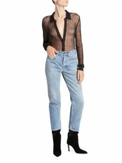 Outlet ๐ฏ Saint Laurent Sheer Long Sleeve Polo ๐ Shirt ๐ฏ