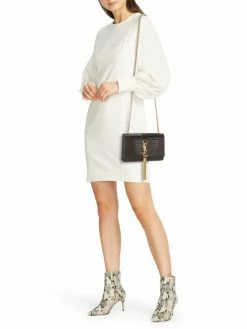 Promo ๐ Saint Laurent Small Kate Crocodile-Embossed Leather Shoulder Bag With Tassel Noir ๐