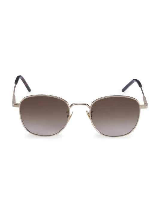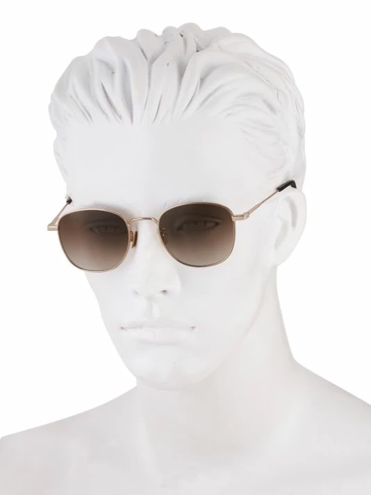 Minimalist sunglasses with round goldtone frames make a sleek and versatile accessory.