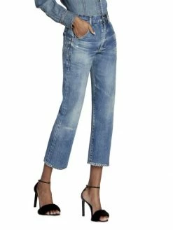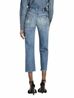Retro-inspired jeans cut with a cropped fit are an effortless staple piece.