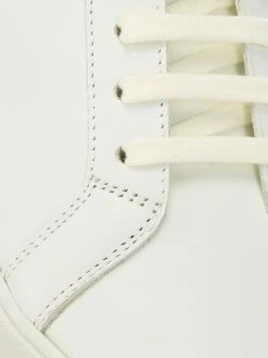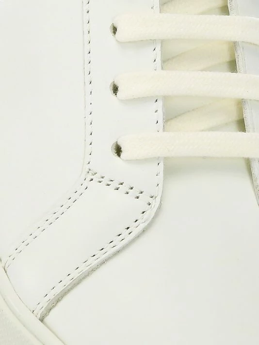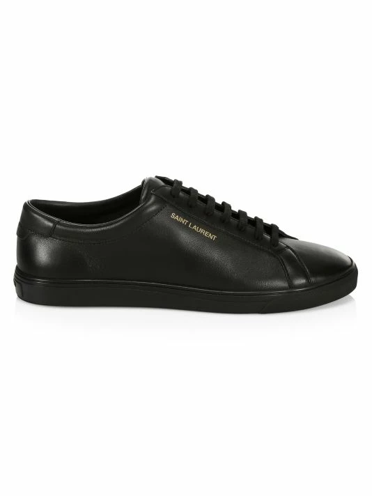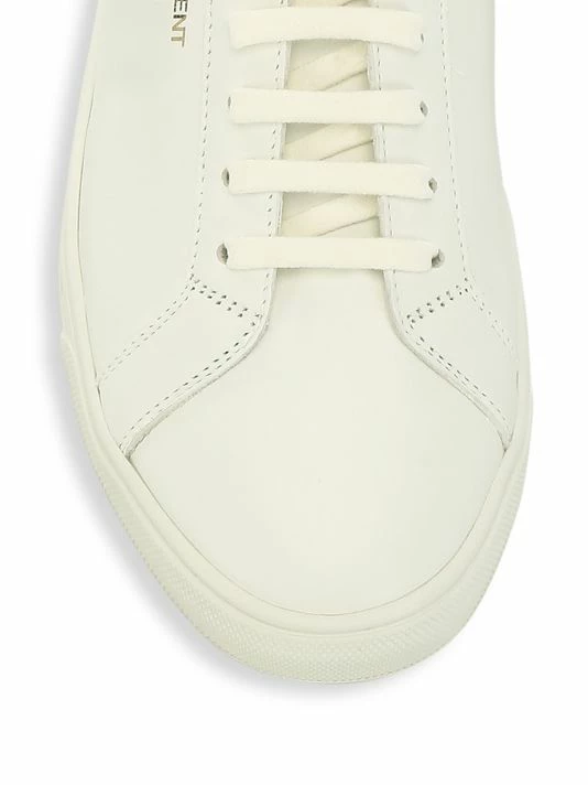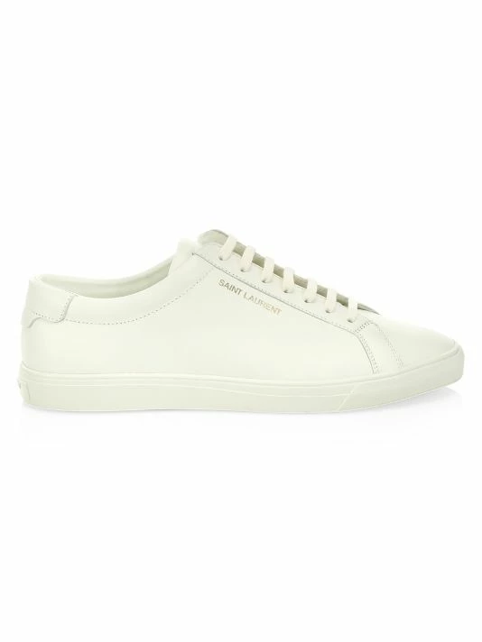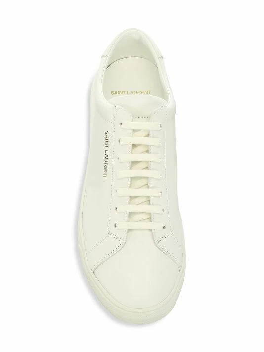 Sleek leather sneakers with elegantly understated logos on the side and heel.