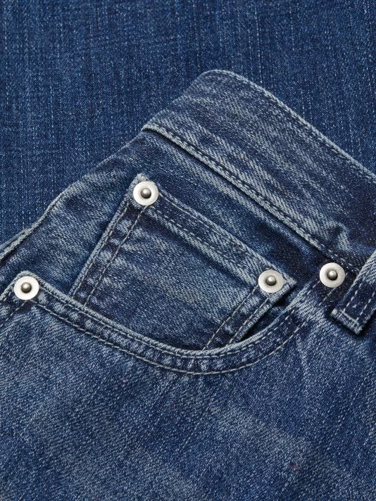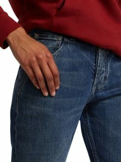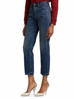 Classic medium-wash jeans updated with an ankle silhouette and clean straight leg cut.
