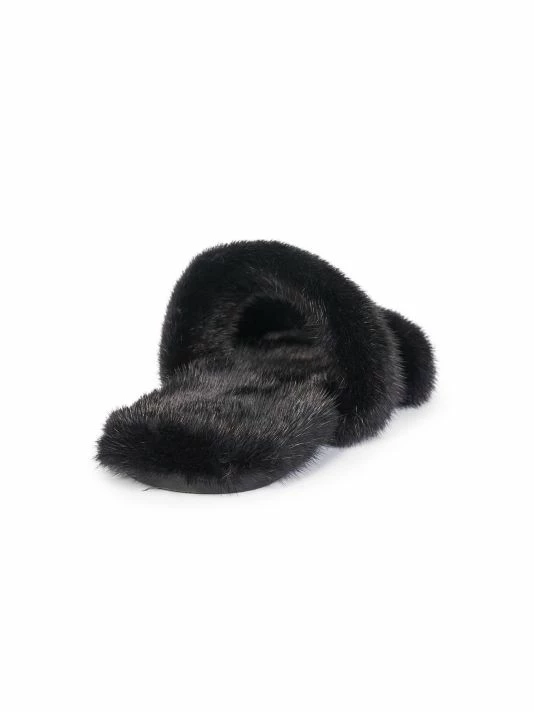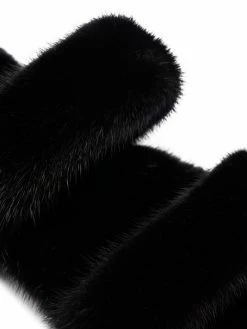 Classic open-toe slides elevated with by a luxe mink fur fabrication.
