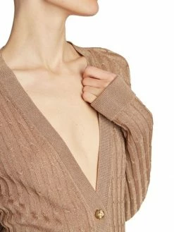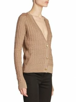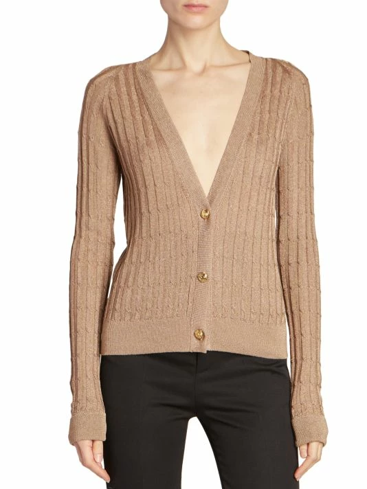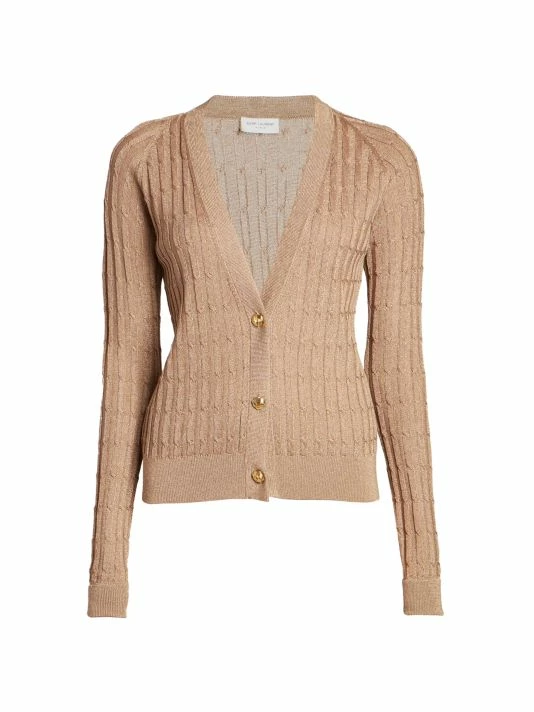 Crafted of a luxurious silk blend, this V-neck cardigan from Saint Laurent features goldtone buttons and a cable-knit design.