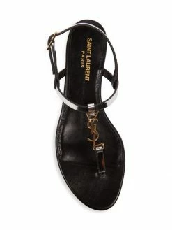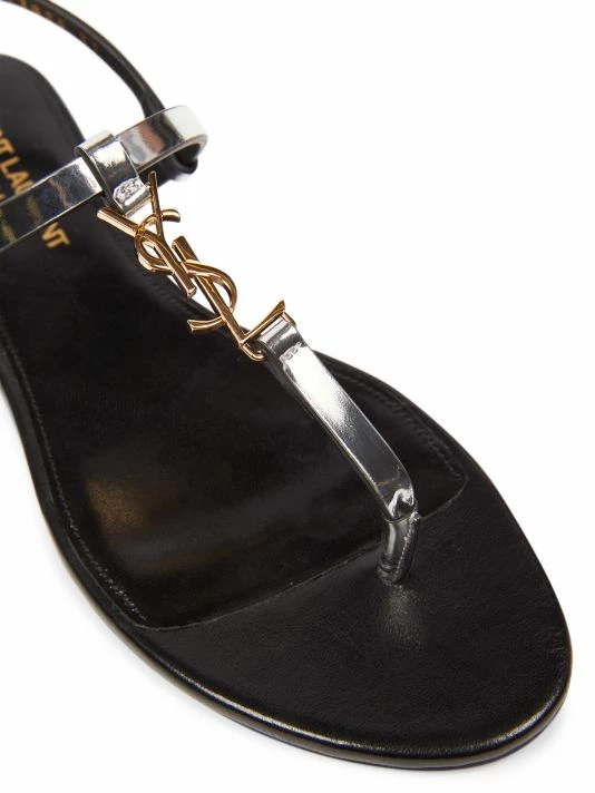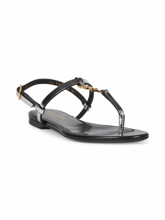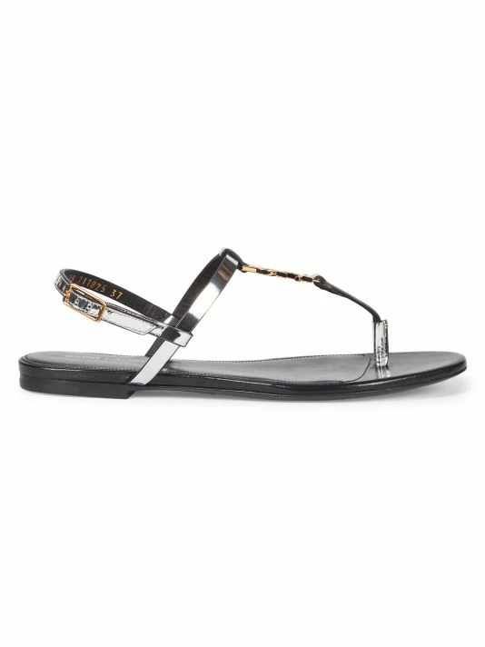Highlighted with polished YSL logo hardware, Saint Laurent’s Cassandra Iota sandals are made in Italy of rich metallic leather. This flat pair is finished with an adjustable slingback strap.