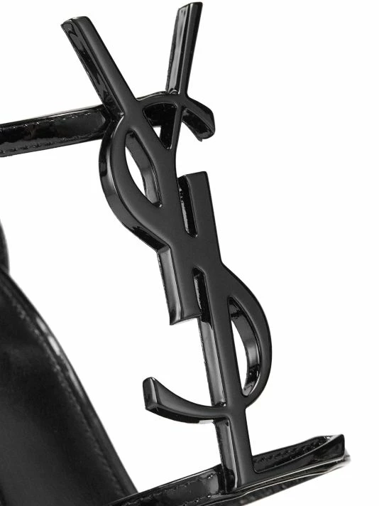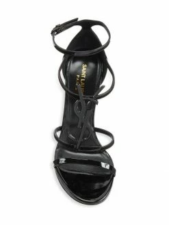 Strappy stilettos in rich leather adorned with iconic Saint Laurent monogram.