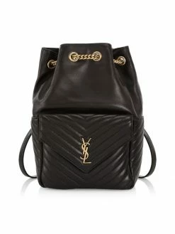 This bucket backpack is highlighted with YSL hardware at chevron quilted envelope flap.