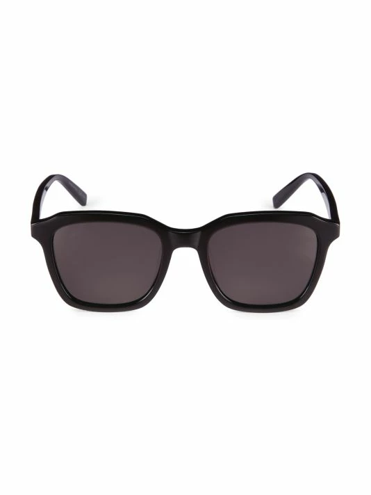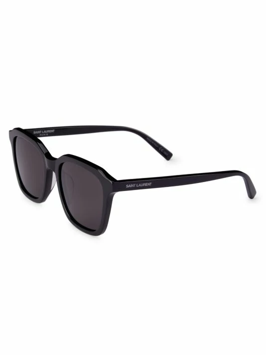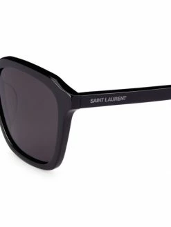 From the Classic Collection. These squared-silhouette sunglasses feature solid lenses and a lasered Saint Laurent logo enriched with enamel.