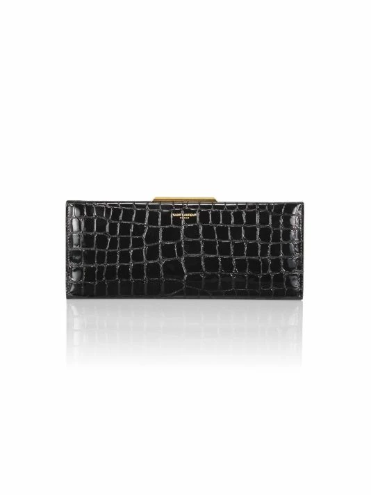 Accompanied by a dainty chain strap, Saint Laurent’s petite clutch is made in Italy of crocodile-embossed leather.