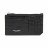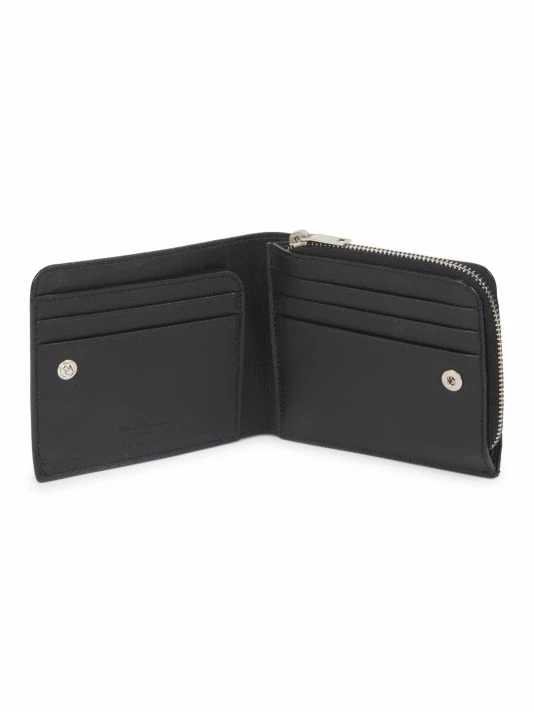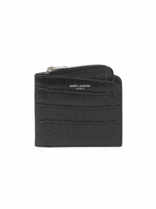 This luxurious croc embossed leather bi-fold wallet has a zippered pocket.