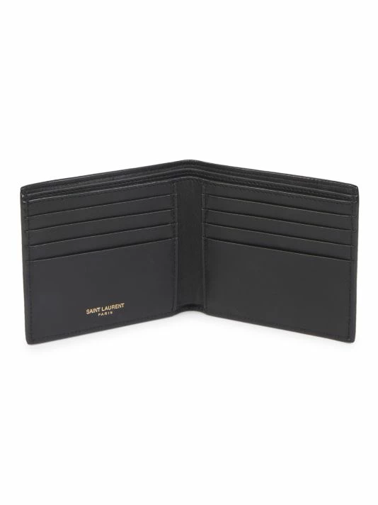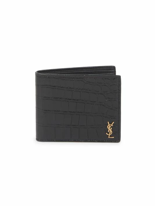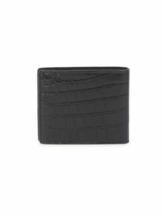 Signature styling and logo trim elevate croc-embossed leather wallet.