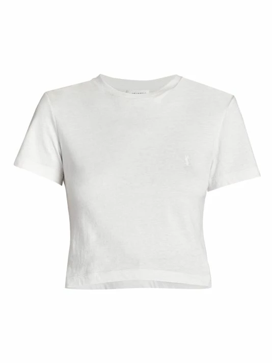 Classic short-sleeve T-shirt is crafted of soft French cotton, cropped for a touch of edge.