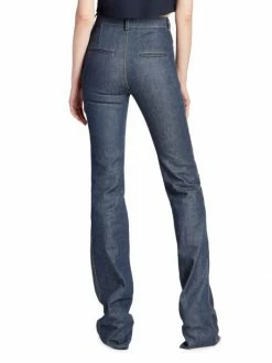 These high-waisted bootcut pants are finished with contrast topstitching.