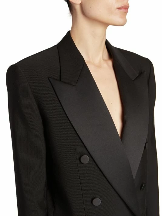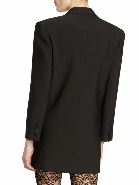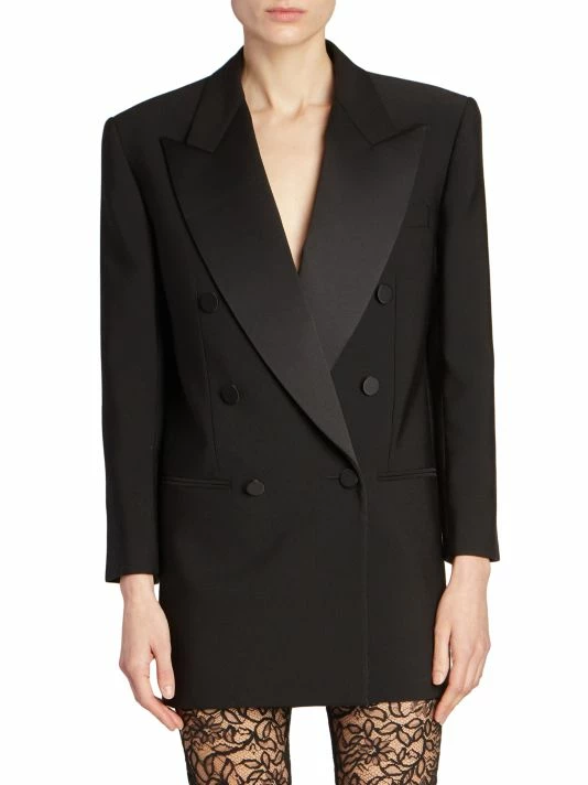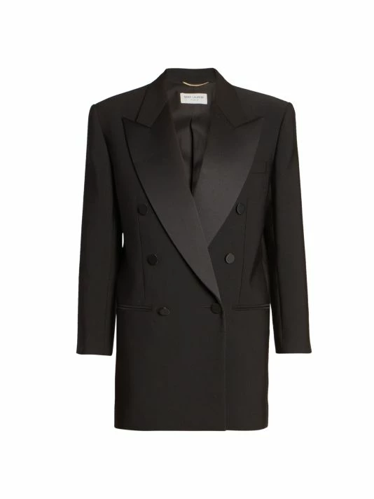 This dynamic blazer from Saint Laurent features satin peak lapels and a tailored double-button closure.