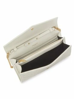 Luxe tri-quilted leather wallet on a removable shoulder chain accented with Saint Laurent’s signature monogram detail.