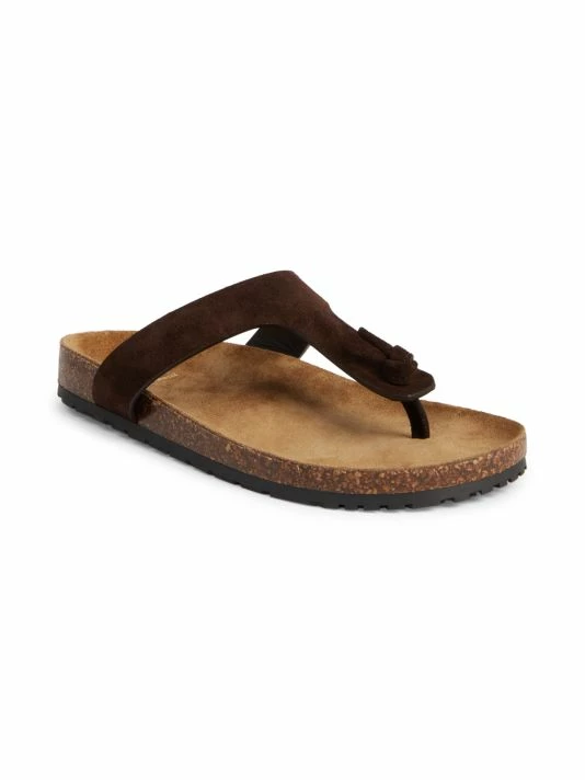 Soft suede tops these effortless cork-sole sandals, with a wearable T-strap shape.