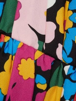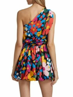 Cut in a one-shoulder silhouette, this pleated minidress boasts mixed floral prints and a dimensional bubble hem.