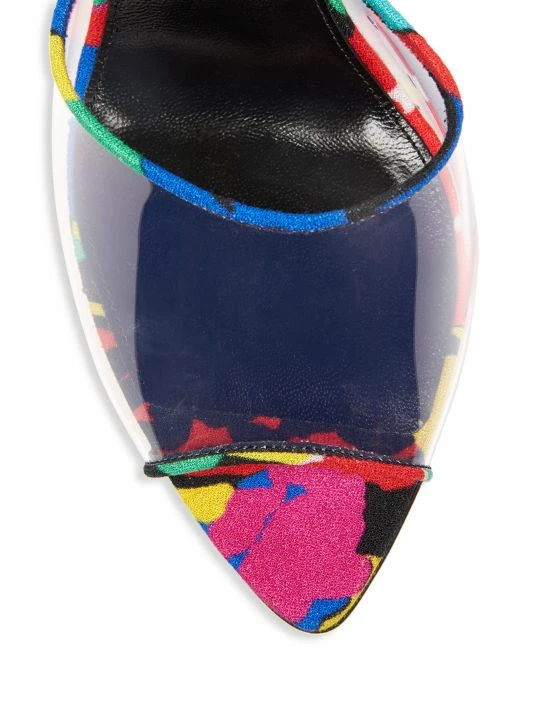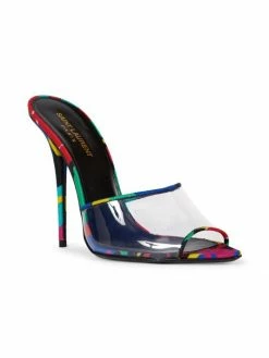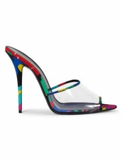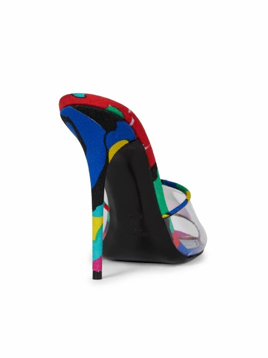 These high-heel mules are adorned with a translucent vamp and a printed midsole.