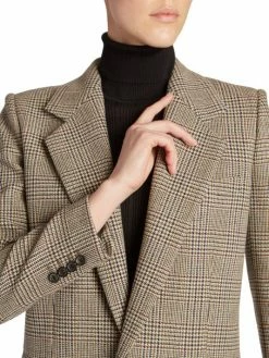 From Saint Laurent, this posh glen check blazer has a subtly oversized fit crafted of a soft wool blend.