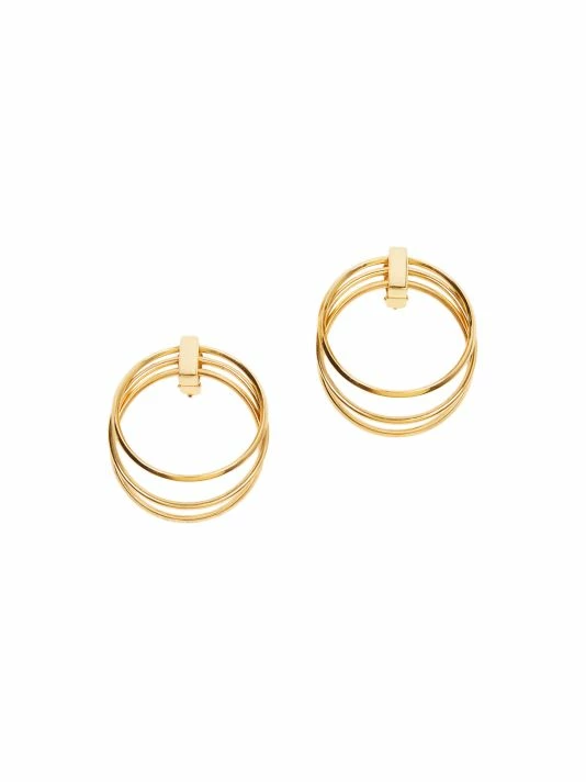 Saint Laurent’s geometric earrings are designed with three rings in goldtone metal.