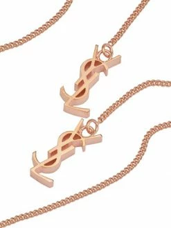 Saint Laurent’s long threader earrings are crafted of goldtone brass with YSL monogram pendants.