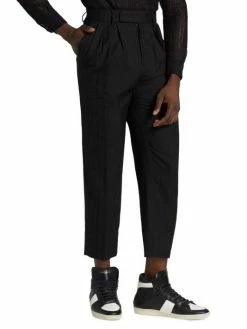 Crafted of luxe Italian wool, these high-rise, wide-leg trousers are lined in silk and feature front pleats and tonal stripes.