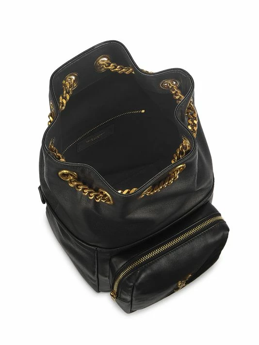 Highlighted with polished YSL logo hardware, Saint Laurent’s Jamie backpack is crafted of luxurious leather and suede. This Italian-made piece is designed in a bucket-style silhouette with a drawstring chain closure.