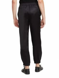 A sophisticated pair of jogger pants featuring tassles at drawstring waistband and allover silk-like sheen.