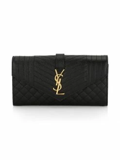Made in Italy of finely grained leather, Saint Laurent’s envelope wallet boasts a mixture of vertical, chevron and carré-quilted over-stitching. This piece is highlighted with polished YSL-logo hardware.
