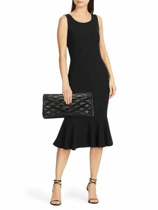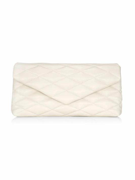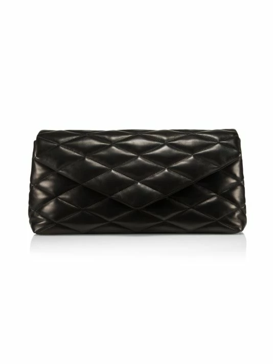 Rectangular envelope clutch flaunting a smooth quilted leather construction.
