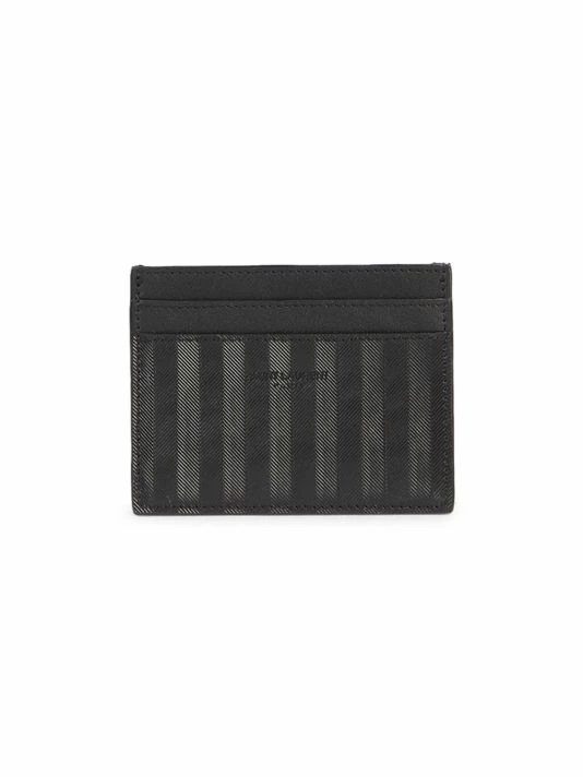 This five-card slot card case is in smooth leather finished with the signature foil stamp and a chevron-patterned panel.