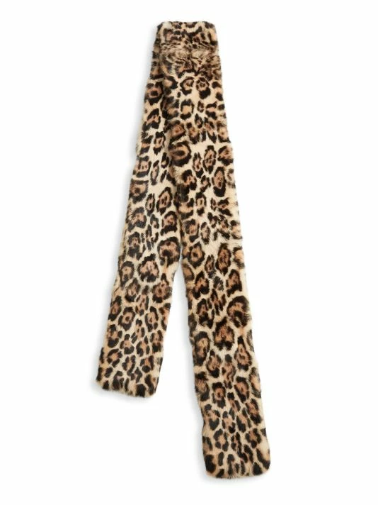 Flaunting a bold leopard pattern, this rabbit fur scarf thrives on striking effects.