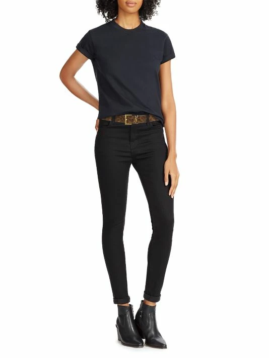 Leoapard-print suede belt decorated with goldtone YSL logo hardware.