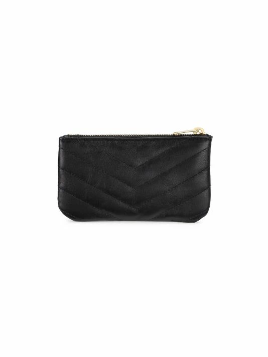 Made in Italy of matelassรฉ quilted leather, Saint Laurent’s coin purse is highlighted with polished YSL logo hardware. This compact piece is accompanied by an attached keychain.