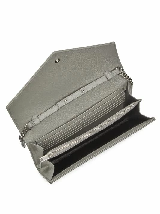 Made in Italy of finely grained leather, Saint Laurent’s envelope wallet boasts a mixture of vertical, chevron, and carré quilted stitching. This piece is highlighted with polished YSL logo hardware.