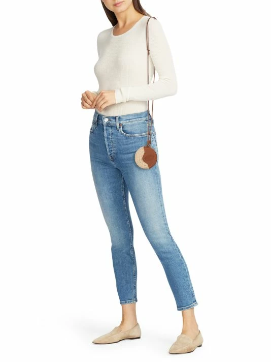 Saint Laurent’s coin pouch is skillfully crafted in Italy of woven raffia and rich leather. Evoking a bohemian allure, this circular piece is finished with an understated signature YSL logo at the front.