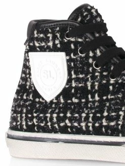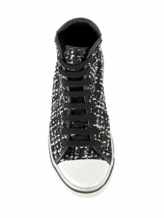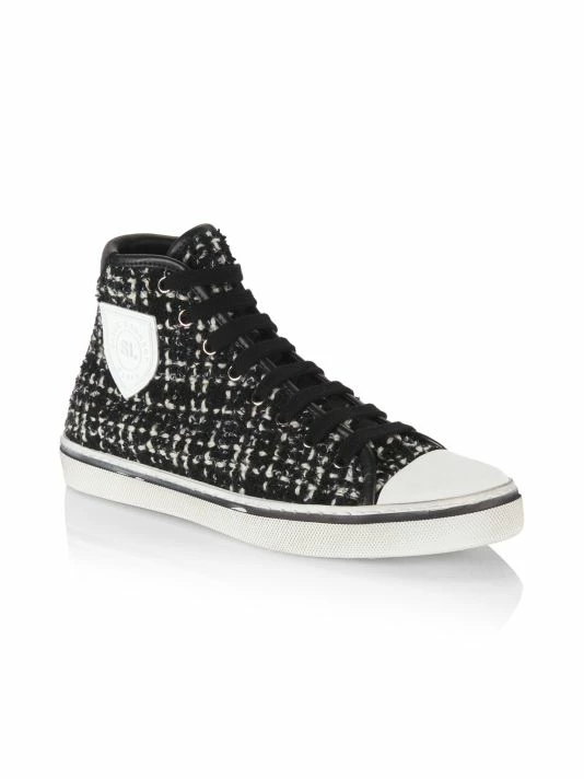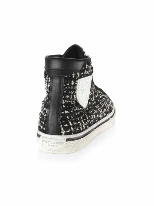 Saint Laurent’s Malibu sneakers are made in Italy of tweed fabric featuring a rich leather counter. This pair is finished with a logo-embossed patch at the sidewall.