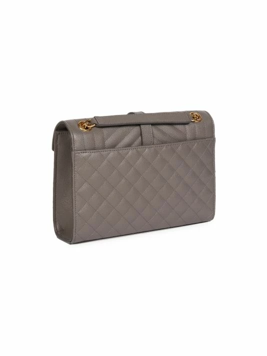 Luxe quilted pebbled leather crossbody bag with a convertible shoulder chain and tonal logo accent.