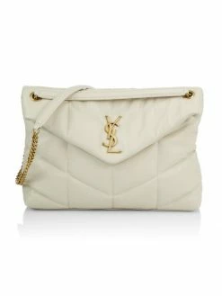 Saint Laurent’s iconic styling is given a modern update with a sporty, puffer-style leather finish.