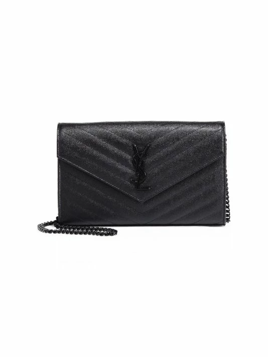 Quilted leather envelope wallet with black hardware.