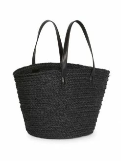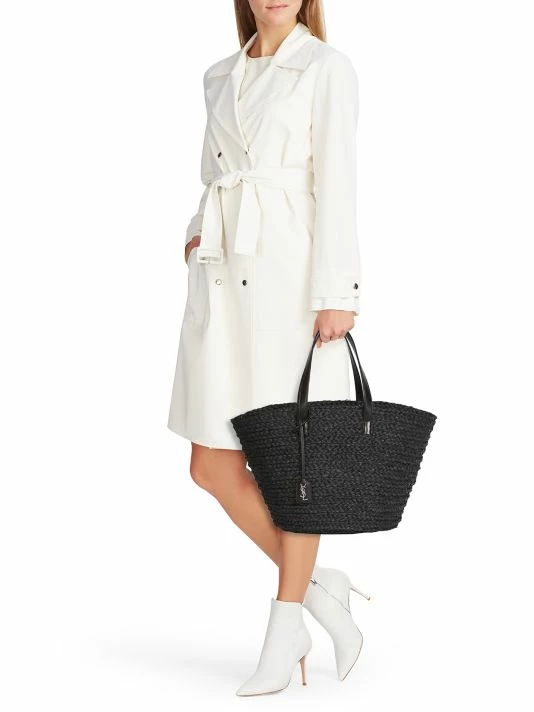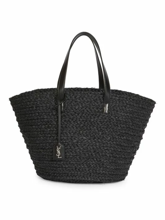 Modern woven straw tote is a breezy summer look.