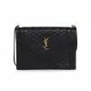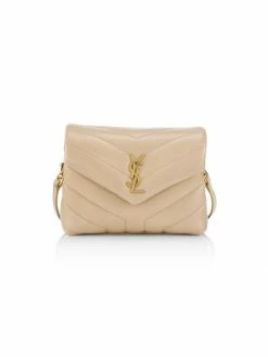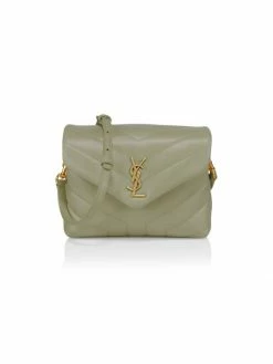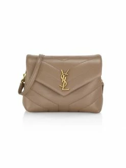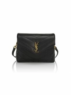 Quilted leather shoulder bag with toy strap, highlighted with signature YSL logo plaque.