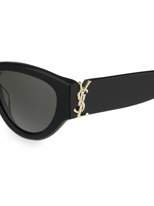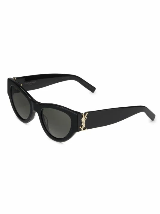From the Monogram Acetate Collection. Saint Laurent’s sunglasses flaunts a chic cat-eye silhouette. Made in Italy, this bold pair is highlighted with a YSL logo at the hinges.
