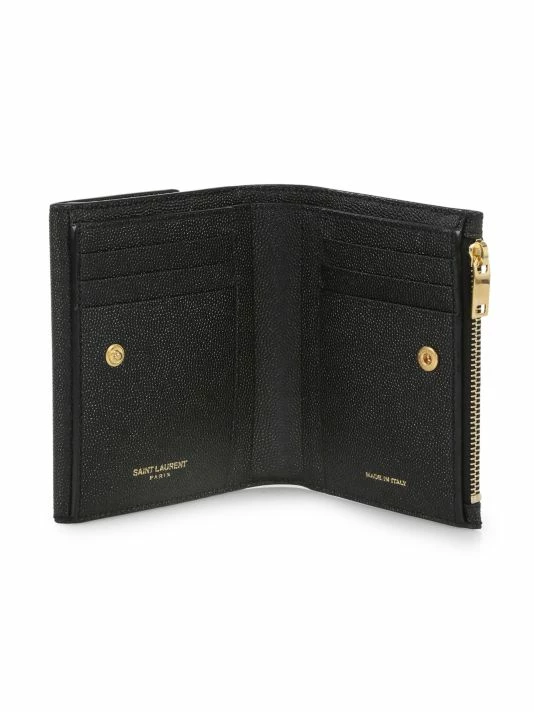 A pebbled leather construction and goldtone logo hardware work to elevate this smart wallet.