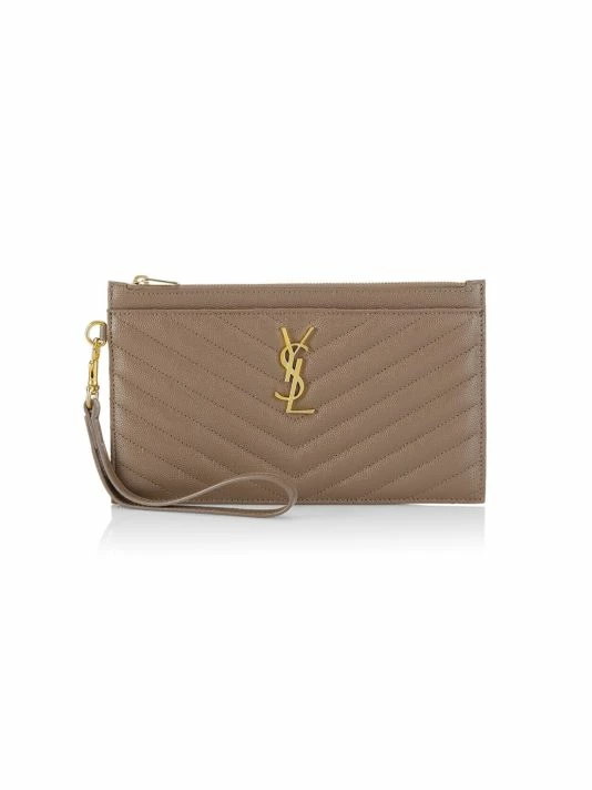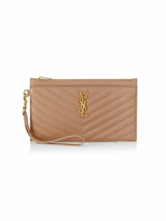 Sleek in a rectangular design, this leather pouch flaunts iconic chevron quilting and is elevated with an iconic insignia at the front.