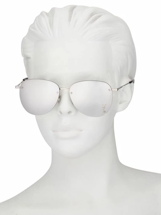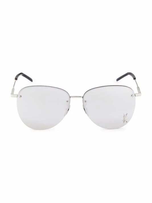 From the Monogram Collection. These half-rim aviator sunglasses feature metal pins and the YSL monogram on the lens.