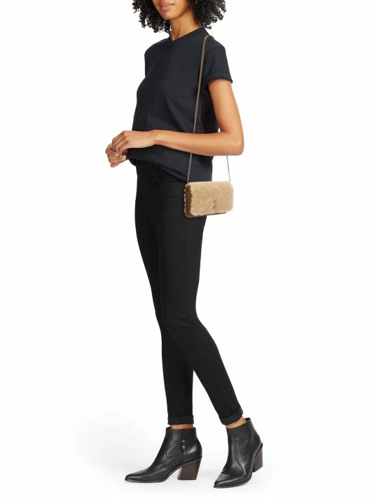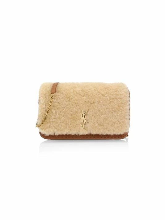 Rendered in genuine shearling and smooth leather, this phone holder is decorated with YSL logo hardware.