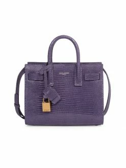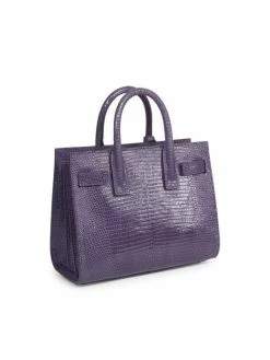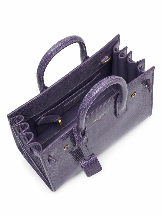 Detailed with an understated foiled logo, Saint Laurent’s Sac De Jour satchel is made of water monitor lizard in Italy. This sophisticated silhouette features accordion sides with compression tabs.