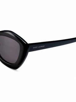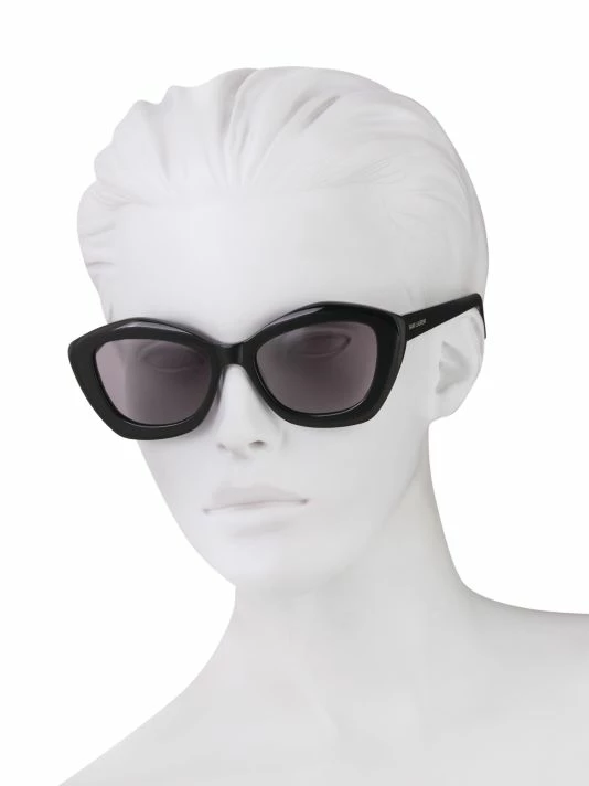 From the New Wave Collection. Chic cat eye sunglasses in a soft, rounded silhouette with temples enriched with the Saint Laurent lasered logo.